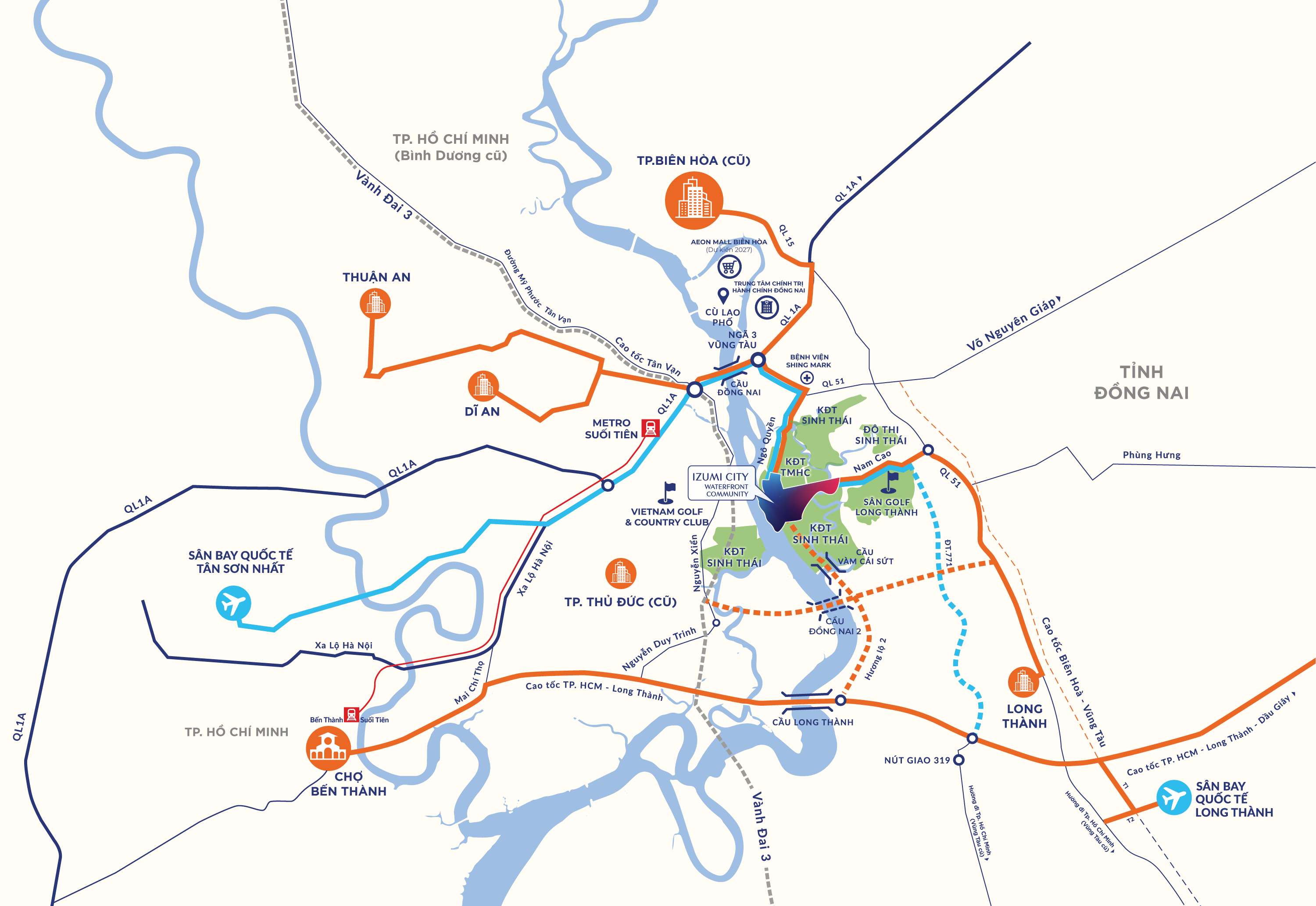 - Tuyến Metro nối dài tới sân bay Long Thành, giúp việc di chuyển về Izumi thuận lợi