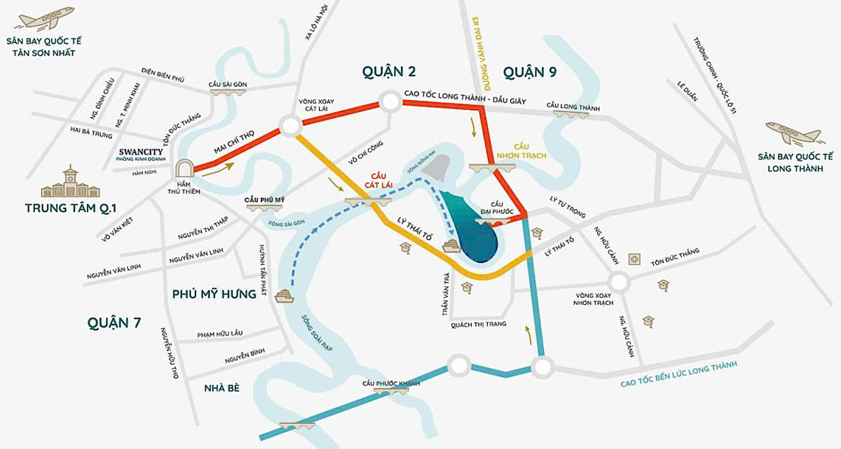 Tọa lạc tại Phân khu 8 – “trái tim” của đảo Đại Phước, Elyse Island sở hữu địa thế phong thủy hiếm có khi được bao bọc trọn vẹn bởi sông Đồng Nai. Trong năm 2026, dự án chính thức trở thành tâm điểm kết nối khi tuyến Vành Đai 3 và cầu Nhơn Trạch đi vào hoạt động, xóa bỏ mọi rào cản về khoảng cách giữa “đảo ngọc” và trung tâm TP.HCM.